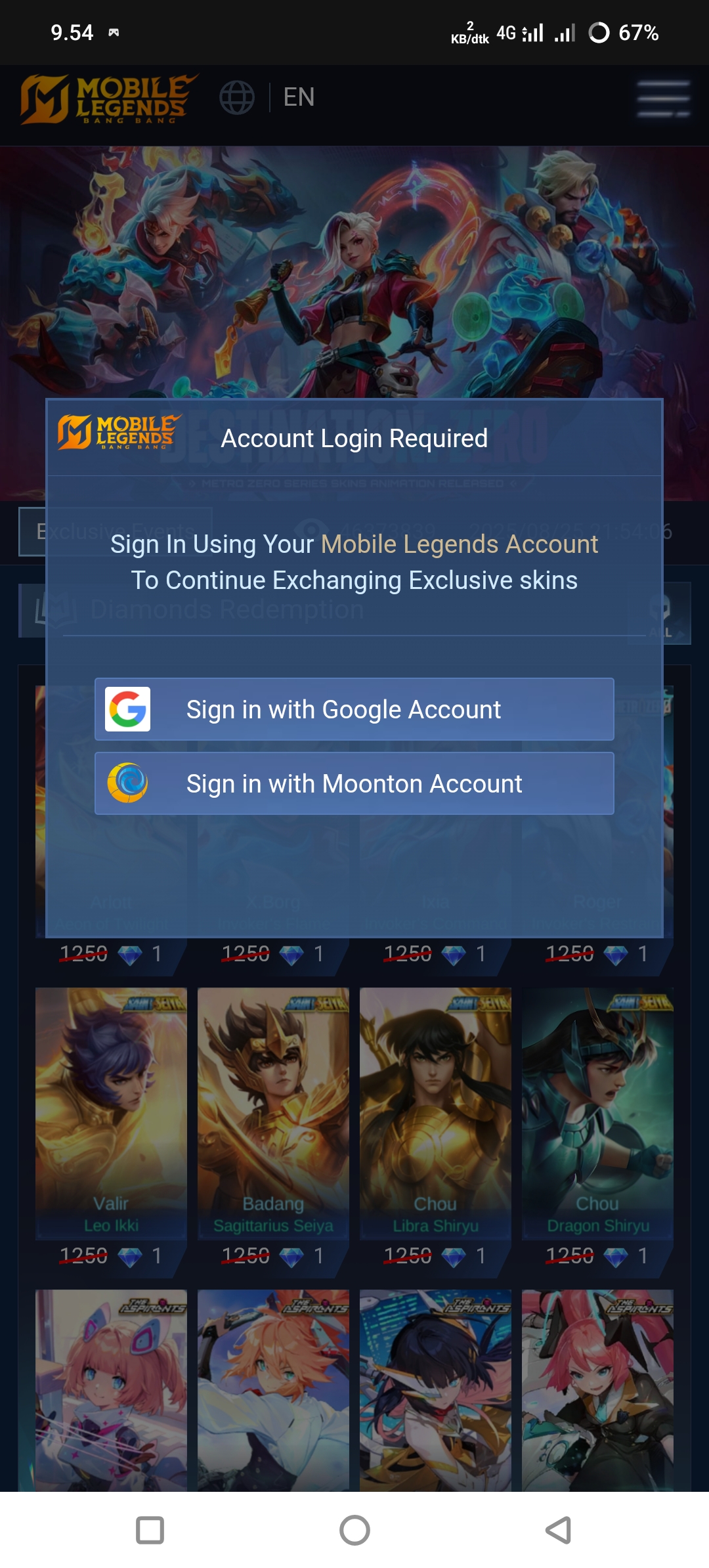 • Login Moonton & Google