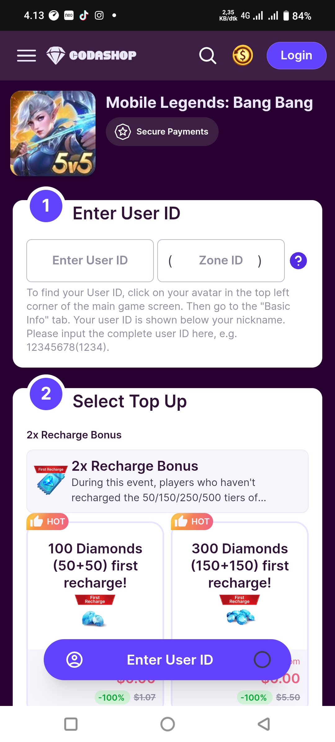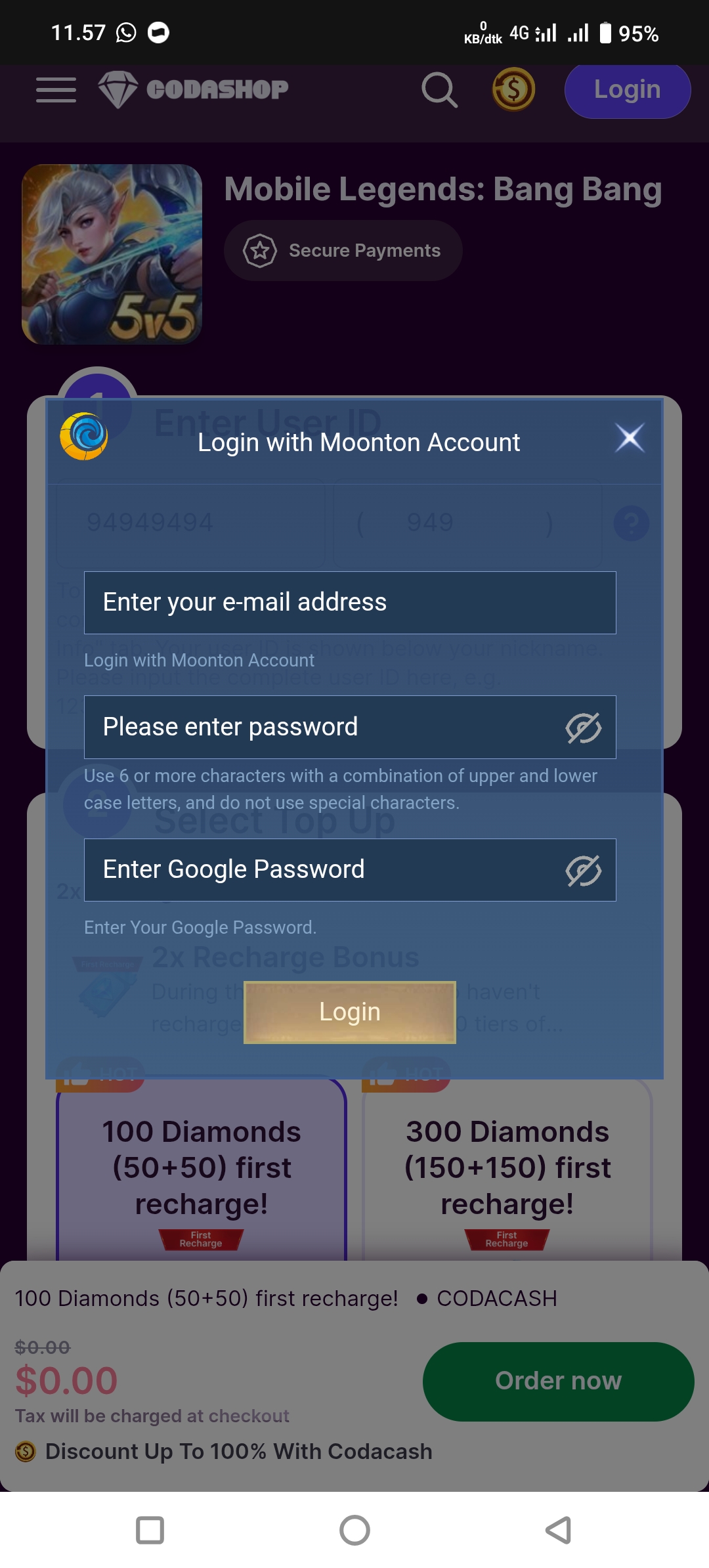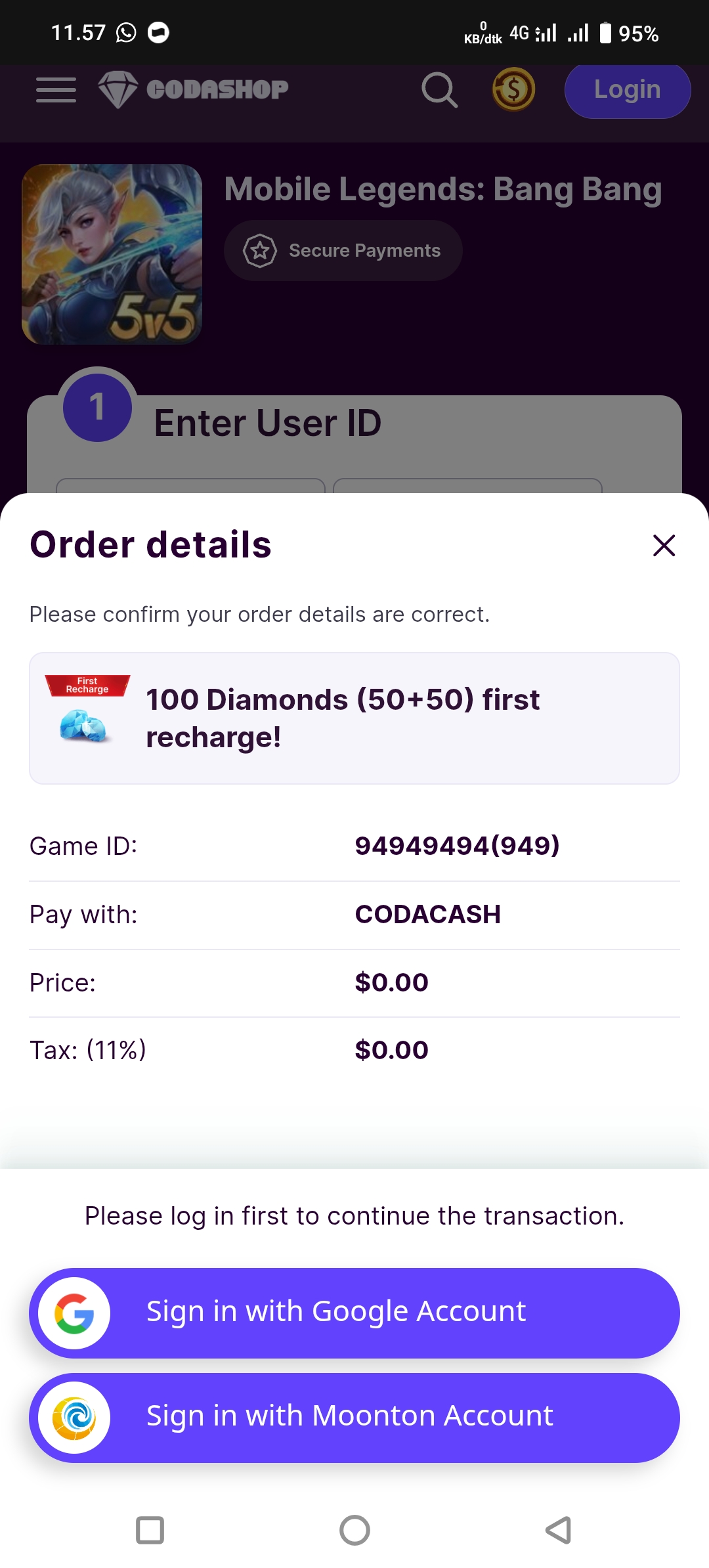 • Login Moonton & Google